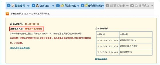 第四步:郵寄資料核對成功 第五步:提交管局審核 第六步:備案成功 | |