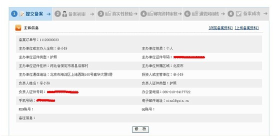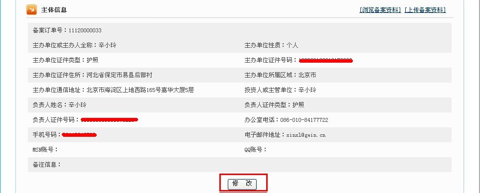 第一步:點擊“修改備案”按鈕