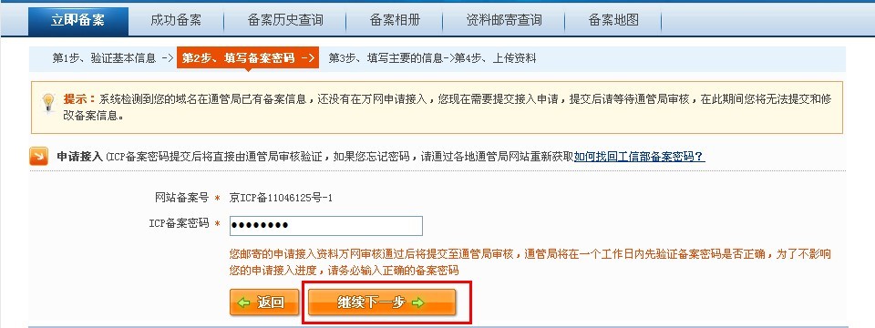 備注: 接入過(guò)程中若想修改域名,需要放棄本次備案,重新填寫。 | |