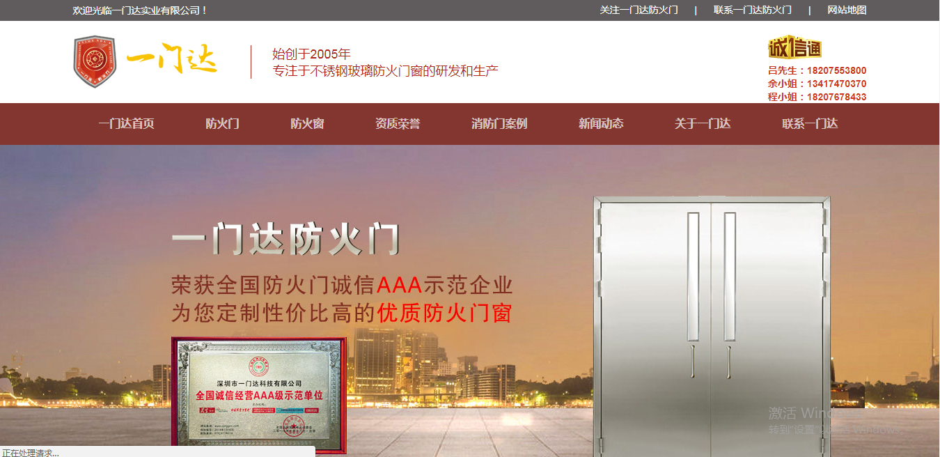 營銷型網(wǎng)站制作案例:深圳一門達,甲級鋼質(zhì)玻璃防火門
